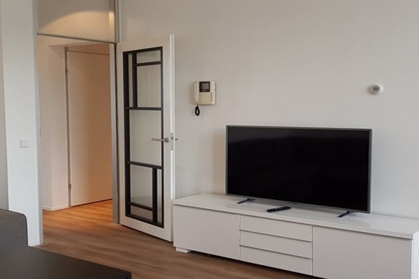 Entree, hal van waaruit u alle vertrekken kunt betreden. Woonkamer met volledig ingerichte luxe open keuken en toegang tot terras gelegen op het zuiden met uitzicht op het groen. Hoofdslaapkamer met tweepersoonsbed en inloopkast. 2e slaapkamer met eenpersoonsbed en garderobekast. Badkamer met ligbad en wastafel en wasmachine en droger. Apart toilet. Opbergkast. Eiken houten vloeren door het gehele appartement Dubbele beglazing door het hele appartement Aparte privé berging voor fietsen etc.