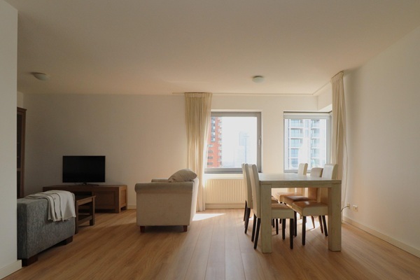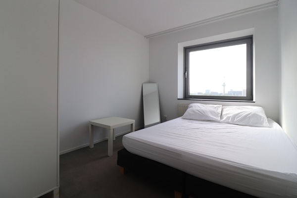 Het appartement is gelegen op de 15e verdieping en beschikt over een praktische en ruime indeling. Via de entree en hal bereikt u de verschillende vertrekken van de woning. De ruime en lichte woonkamer biedt een prachtig uitzicht over de stad en de rivier en beschikt over een inpandig balkon waar u comfortabel kunt genieten van het uitzicht. De keuken is voorzien van diverse inbouwapparatuur, waaronder een keramische kookplaat, vaatwasser, koelkast en een aparte vriezer. Daarnaast is er een praktische berging met wasmachine en droger. Het appartement beschikt over drie slaapkamers, waaronder een ruime hoofdslaapkamer en twee extra kamers die geschikt zijn als slaap-, werk- of logeerkamer. De luxe badkamer is voorzien van een ligbad, aparte douche en dubbele wastafel. Studenten: Toegestaan (maximaal 2 woningdelers)