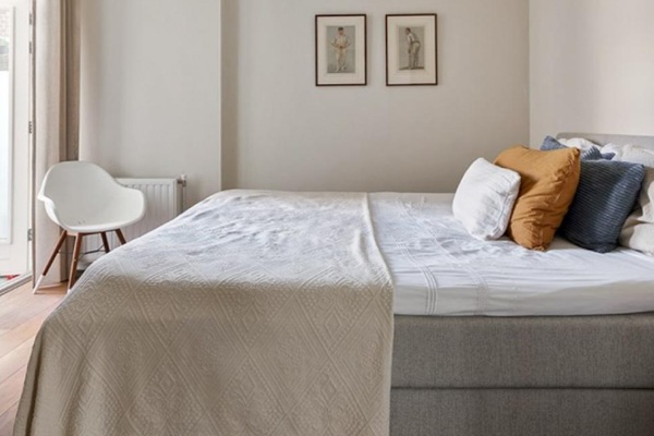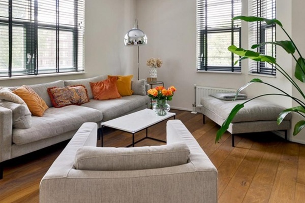 Indeling: Gemeenschappelijke ingang aan de straatkant, trap naar de tweede verdieping. Tweede verdieping: Hal met apart toilet, wasruimte en toegang tot alle kamers. De woonkamer bevindt zich aan de voorzijde en geniet van veel natuurlijk licht doordat deze op de hoek ligt (op het zuidwesten). De eetkamer en open keuken zijn bereikbaar via de woonkamer en/of de hal. De moderne keuken is voorzien van alle moderne inbouwapparatuur, zoals een grote koelkast, vriezer, combi-oven/magnetron, gasfornuis en vaatwasser. De hoofdslaapkamer bevindt zich aan de achterzijde en heeft toegang tot het privébalkon op het oosten. Verder beschikt het appartement over een luxe badkamer met ligbad, aparte inloopdouche, dubbele wastafel met opbergruimte en een handdoekradiator. De tweede ruime slaapkamer aan de voorzijde kan gebruikt worden als gastenkamer en/of thuiskantoor. Tot slot is er een privéberging van 6 m² op de zolder. – GEEN STUDENTEN.