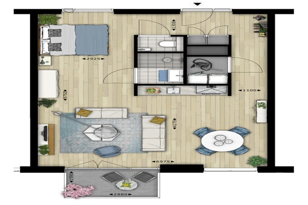 Let op: dit betreft een studio – er is géén aparte slaapkamer. Alles bevindt zich in één open ruimte. Deze lichte en ruime studio op de tweede verdieping is praktisch en modern ingedeeld. Wat je kunt verwachten: Grote raampartijen met veel daglicht Moderne keuken met inbouwapparatuur (inductiekookplaat, combimagnetron, vaatwasser en koelkast) Strakke badkamer met inloopdouche en wastafel Apart toilet Eigen balkon Belangrijk: De beschikt niet over een aparte slaapkamer. Het slaapgedeelte dient binnen de open ruimte te worden ingericht.