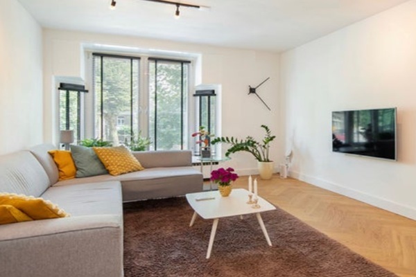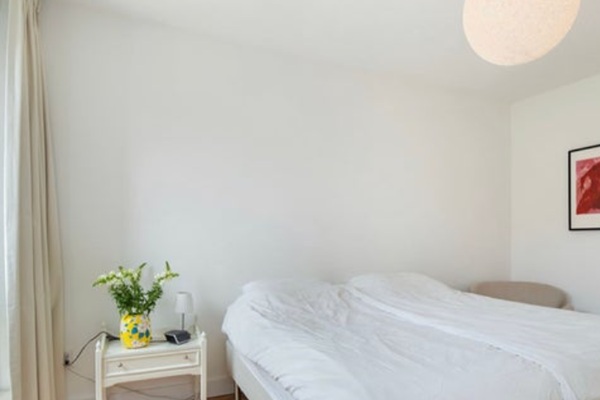 De woonkamer is enkele treden lager gelegen en is comfortabel ingericht met een ruime loungehoek. De twee slaapkamers zijn verdeeld over verschillende niveaus: de eerste rustige slaapkamer aan de achterzijde is voorzien van een boxspring en kasten, de tweede slaapkamer aan de voorzijde beschikt over een tweepersoonsbed, kastruimte en toegang tot het terras. De badkamer is voorzien van een inloopdouche, dubbel wastafelmeubel met verlichte spiegel, tweede toilet en extra kastruimte. Tevens is er een berging met wasmachine/droger. Het appartement beschikt over een parkeerplaats, inpandige berging en fietsenstalling.