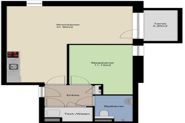 INDELING Algemeen: - Entree met bellentableau en toegang tot het complex. - Trapopgang en lift naar verdieping; Appartement: - Entree; - Inpandige berging met aansluiting wasapparatuur;; - Betegelde badkamer voorzien van inloopdouche, toilet en wastafel; - Woonkamer met toegang tot balkon; - Nette keuken voorzien van diverse inbouwapparatuur waaronder koelkast, vrieskast, combimagnetron, inductiekookplaat, afzuigkap en vaatwasser; - Slaapkamer;