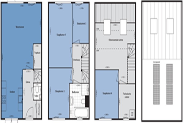 Indeling BEGANE GROND: In de hal bevindt zich de meterkast en een separaat toilet met fonteintje. Vanuit de hal is er toegang naar alle vertrekken op de begane grond en de trap naar de eerste verdieping. De woonkamer heeft een open keuken, welke is voorzien van inbouw apparatuur zoals een vaatwasser, oven/magnetron, inductie kookplaat en koel-/vriescombinatie. Aan de achterzijde bevindt zich de tuin met tuinhuis. EERSTE VERDIEPING: Vanuit de overloop is er toegang tot alle vertrekken op deze woonlaag en de trap naar de tweede verdieping. Er zijn twee ruime slaapkamers aanwezig waar voldoende ruimte is voor een tweepersoons bed en een kleding kast. De kleinere slaapkamer kan ook gebruikt worden als werkkamer of kledingruimte. De badkamer is voorzien van een douche, ligbad, wastafel, toilet en handdoekenradiator. TWEEDE VERDIEPING: De bovenste verdieping kan worden gebruikt als grote slaapkamer of extra opbergruimte. Hier bevindt zich de wasmachine aansluiting.