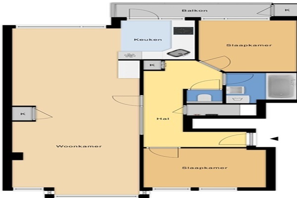 Indeling Via een portiekdeur, entree, hal met toilet, berging met meterkast, ruime woon-/eetkamer. Via de open keuken met apparatuur, deur naar het balkon, met ruimte voor een kleine zithoek, balkonkast, een ruime slaapkamer aan de voorzijde, een ruime slaapkamer aan de achterzijde, badkamer met bad, wastafel en aansluiting voor wasmachine. De cv-ketel bevindt zich in de kast in de hal.