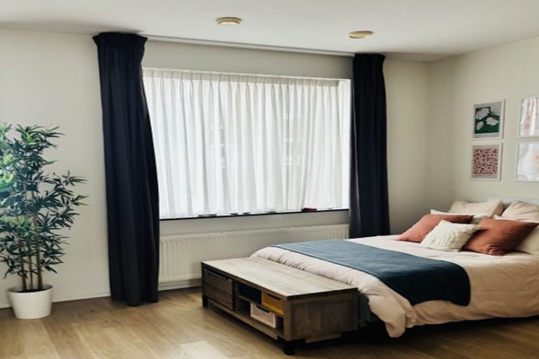 Ideaal voor een gezin, collega’s of vrienden die comfortabel willen wonen. Indeling Begane grond De begane grond biedt een zeer lichte en diepe woonkamer met een prachtig dakraam, wat zorgt voor een aangename natuurlijke lichtinval. De moderne keuken is volledig uitgerust en van alle gemakken voorzien. Daarnaast is er een apart toilet, praktische opbergruimte en toegang tot de fijne, eigen tuin. Eerste verdieping Hier bevinden zich twee ruime slaapkamers. De grote badkamer is voorzien van zowel een douche als een ligbad. Tevens is er een aparte opbergruimte die ook perfect kan dienen als inloopkast. Tweede verdieping De bovenste verdieping beschikt over een royale extra woon- of slaapkamer met toegang tot een heerlijk privé dakterras. Ook vind je hier een aparte ruimte met wasmachine en droger, evenals extra bergruimte.