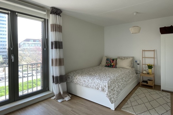 De lichte woonkamer beschikt over een open keuken die volledig is uitgerust met moderne inbouwapparatuur. Via de openslaande deuren heb je direct toegang tot het balkon, waar je heerlijk van de buitenlucht kunt genieten. De ruime slaapkamer heeft grote raampartijen en een en-suite badkamer met douche, wastafel en aansluiting voor de wasmachine. Daarnaast is er een separaat toilet en een inpandige berging aanwezig. In het complex is bovendien een gemeenschappelijke fietsenstalling waar je jouw fiets veilig kunt stallen.