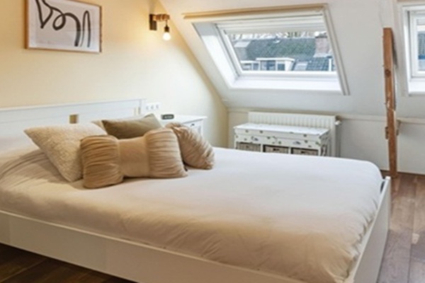 Indeling Begane grond Via de entree kom je in de hal met toilet en toegang tot de ruime leefruimte. De woonkamer is voorzien van een karakteristieke en-suite met glas-in-lood schuifdeuren, waardoor de ruimte eenvoudig kan worden verdeeld in een zit- en eetkamer of bijvoorbeeld een werkruimte aan huis. De woonkamer heeft een prachtige houten vloer en een sfeervolle gaskachel. Aan de achterzijde bevindt zich de moderne open keuken met natuurstenen werkblad en diverse inbouwapparatuur, waaronder een oven, magnetron, koelkast, vriezer, kookplaat, afzuigkap en vaatwasser. Via de openslaande deuren bereik je de zonnige achtertuin. Eerste verdieping Op de eerste verdieping bevindt zich momenteel een royale en lichte kamer met grote Velux dakramen. Deze ruime verdieping kan eenvoudig worden ingericht als extra slaapkamer, een thuiswerkplek of een hobbyruimte, waardoor de ruimte flexibel te gebruiken is. Tevens is er een entresol aanwezig die ideaal is als extra bergruimte. De moderne badkamer is voorzien van een ligbad, douche, wastafelmeubel en toilet. Tuin De woning beschikt over een fijne achtertuin op het zuidwesten met voldoende ruimte voor een eettafel en loungehoek. Dankzij de sfeervolle overkapping kun je hier ook op minder zonnige dagen heerlijk buiten zitten. - Niet geschikt voor woningdelers/studenten;