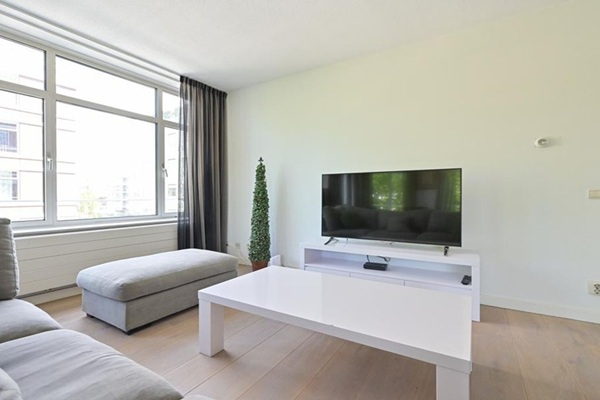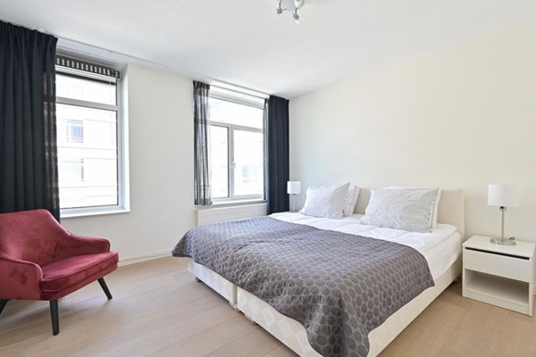 GEEN STUDENTEN OF HUISDEELNEMERS Indeling: De lobby, met video-intercom, is vanaf twee zijden toegankelijk. Een beveiligde binnendeur vanuit de hoofdingang geeft toegang tot een hal met trap en lift. Voorbij de voordeur van het appartement bevindt zich een hal, een apart toilet met wastafel, een wasruimte, twee ruime slaapkamers en een moderne badkamer met inloopdouche en dubbele wastafel. Aan het einde van de hal bevindt zich de uitzonderlijk lichte, open woon-/eetkamer, keuken, bijkeuken en serre. De strakke, open keuken is voorzien van voldoende kastruimte en geïntegreerde apparatuur, waaronder een 4-pits kookplaat, combi-oven/magnetron, vaatwasser en grote koelkast/vriezer.