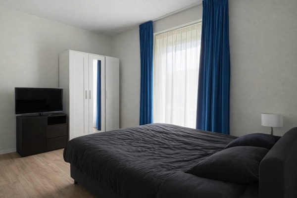 Je komt binnen in de hal met apart toilet van Villeroy & Boch. Via de hal kom je in de badkamer, twee slaapkamers van ca. 15m2 en 8m2 en de ruime, lichte woonkamer. De grote woonkamer heeft een moderne open keuken voorzien van inductiekookplaat, wandafzuigkap, combimagnetron, koelkast met vriesvak en vaatwasser. Vanuit de woonkamer heb je toegang tot een groot balkon. In de badkamer is een Grohe regendouche en wastafel met Villeroy & Boch onderkast aanwezig. De badkamer is tot aan het plafond betegeld en geeft je een gevoel van luxe.