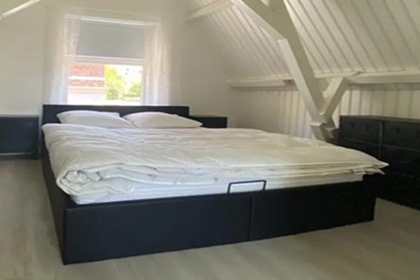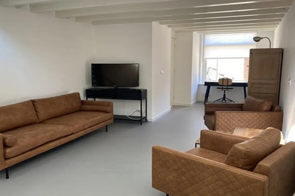 Indeling: Begane grond: Entree, halletje, meterkast met 10 groepen elektra en 3 aardlekschakelaars. Modern toilet met fontein, spiegel en mechanische ventilatie. Woonkamer 7.72 x 3.54 met fraai gietvloer en vloerverwarming, nog diverse balken in het zicht. Prachtige spiltrap van staal en een speelse vide. Zeer ruime, open woon-leef- eetkeuken 4.85 x 3.56. De keuken is voorzien van vaatwasser, inductiekookplaat, afzuigkap, Quooker en oven. In een separaat blok is de koelkast met vriezer geplaatst, bevindt zich de opstelling van de wasmachine en droger en de cv ketel. 1e etage: overloop, met naar rechts een trapje naar het riante dakterras van 5.00 x 3.61 waar je 's middags heerlijk in de zon kan zitten. Op de overloop is veel bergruimte gecreëerd achter de schuifpanelen. De luxe badkamer 1.47 x 2.33 is voorzien van ruime inloopdouche, wastafel in meubel met verwarmde spiegel daarboven en tweede toilet. Aan de linkerzijde bevindt zich de hele leuke slaapkamer 3.09 x 2.94 met de spanten en de balken nog in het zicht. * beschikbaar voor 1 maximaal 2 personen.
