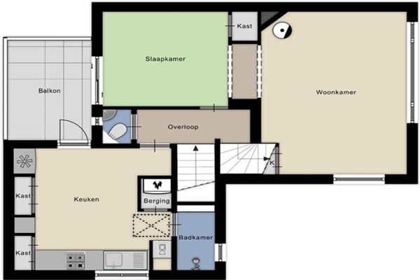 Indeling Begane grond: Entree met hal, meterkast en trapopgang naar de eerste verdieping. Eerste verdieping: Op deze etage bevindt zich een ruime en lichte woonkamer (ca. 32 m²) met een sfeervolle houten vloer en uitzicht over de Leusderweg. Via de woonkamer heeft u toegang tot de slaapkamer, die eveneens is voorzien van een houten vloer. Een schuifpui in de slaapkamer leidt naar het zonnige dakterras (ca. 8 m²) op het zuiden, waar u heerlijk kunt genieten van de buitenlucht. De keuken is voorzien van een betegelde vloer en diverse inbouwapparatuur, waaronder een 4-pits gasstel en een koelkast met vriesvak. Vanuit de keuken heeft u toegang tot de gedeelde badkamer met een douche en wastafel. – Geen woningdelers, studenten of vrienden;