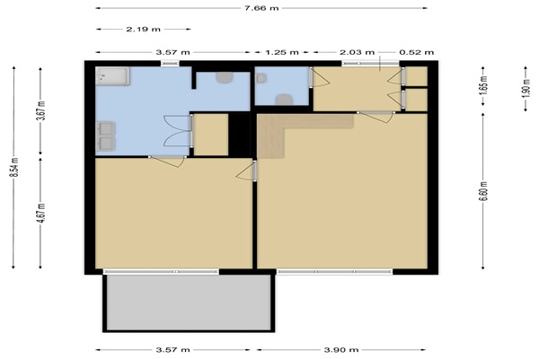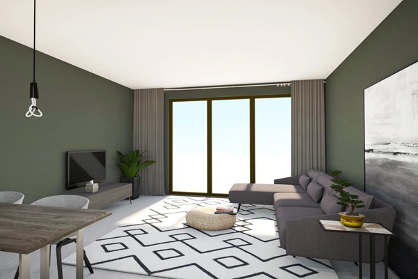 De woning beschikt over een entree/ hal met kast en toilet. Ruime woonkamer met open keuken (L-opstelling voorzien van apparatuur), een ruime geheel betegelde badkamer voorzien van dubbele wastafel, douche, toilet en ruimte voor wasmachine/ droger. Terras via schuifpui bereikbaar, ca. 9 m2 en gelegen op het zuiden. De woning is voorzien van een pvc-stroken vloer in een neutrale kleurstelling, de wanden zijn behangen en de plafond v.v. een fijn korrel spuitwerk. Geen studenten;