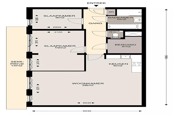 3-kamerappartement met een oppervlakte van 94 m2. Het appartement beschikt over een lichte woonkamer van 38 m2 met toegang tot de buitenruimte van 15 m2. Het appartement heeft 2 slaapkamers. De ene slaapkamer is 19 m2 en de andere slaapkamer is 9 m2. Hier kun je bijvoorbeeld ook een prima werk- en/of studeerkamer van maken. De keuken is uitgerust met diverse inbouwapparatuur. De badkamer is luxueus uitgevoerd met een ligbad, douche en wastafel. Tevens tref je een aparte berging in het appartement welke is voorzien van een aansluiting voor jouw wasmachine en/of droger. Verder heb je nog een parkeerplaats in de parkeergarage.