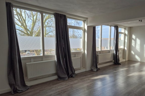 Indeling: Gezamenlijke entree met trapopgang naar de tweede etage. Binnenkomst in de hal met toegang tot alle vertrekken. Zeer ruime en zeer lichte woonkamer aan de voorzijde van het pand. Vanuit de woonkamer is er een mooi uitzicht over het gezellige Moleneindplein. Moderne open keuken welke is voorzien van een vaatwasser, oven, kookplaat en afzuigkap. Twee nette slaapkamers aan de achterzijde van het pand. Badkamer met ligbad, douche, wastafel en aansluitingen voor de wasapparatuur. Separaat toilet.