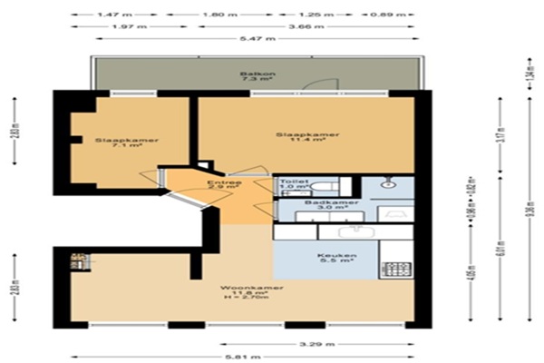 Geschikt om te delen. Indeling: Je komt binnen via de hal die toegang tot alle andere ruimtes. De open keuken is net geplaatst en is voorzien van een vaatwasser, gas kookplaat, afzuigkap, combimagnetron en koel-vries combinatie. Aan de achterzijde zijn twee slaapkamers welke ook toegang hebben tot het balkon, welke gelegen is op het zuiden. Een slaapkamer is ongeveer11.4m2 en de tweede is ongeveer 7.1m2. Er is ruimte om een wasmachine te plaatsen. De badkamer is voorzien van een dubbele wastafel, douche en handdoekradiator. Het toilet is apart. Geschikt voor maximaal twee delers; Garantstellers worden niet geaccepteerd;