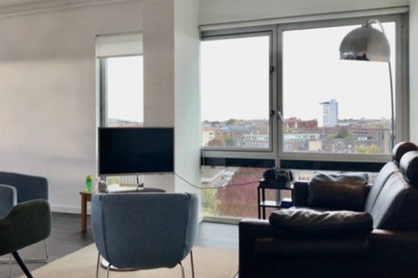 Indeling: Entree/hal met toegang tot een kledingkamer, twee slaapkamers, een separaat toilet en een moderne badkamer. De luxe badkamer is voorzien van een inloopdouche en een dubbele wastafel. De lichte woonkamer beschikt over veel daglichtinval en biedt toegang tot het ruime balkon. De open keuken is modern afgewerkt en volledig uitgerust met onder andere een inductiekookplaat, afzuigkap, hoge koelkast met aparte vriezer, Miele combi magnetron/oven, vaatwasser en een ingebouwde wasmachine en droger.