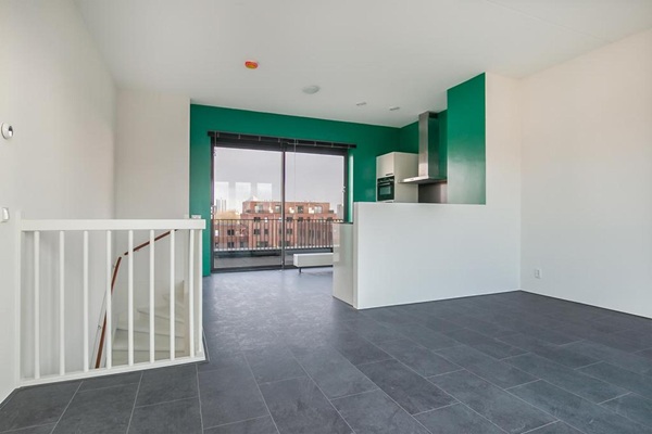 Indeling: Entree vanaf de galerij. Op de 2e verdieping bevinden zich de 3 slaapkamers en badkamer, toilet, bergruimte en technische ruimte voor een extra vriezer en aansluiting wasmachine. Op de 3e verdieping bevindt zich de woonkamer (20,69 m²) met open keuken (14,30 m²). Aan de voorzijde beschikt de woning over een Frans balkon. Aan de achterzijde, vanuit de keuken, is het zonneterras bereikbaar (14,56 m² / NO). Van hieruit is vrij uitzicht op de binnentuin met speelplaats van het complex.