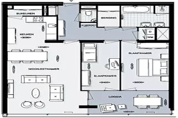 Bij binnenkomst word je direct verwelkomd in een royale hal die toegang biedt tot de verrassend ruime woonkamer. Enorme raampartijen en openslaande deuren laten het daglicht rijkelijk binnen en creëren een prachtig panorama. De open, moderne keuken is volledig uitgerust met hoogwaardige inbouwapparatuur en vormt de perfecte plek om te koken en te genieten van een diner met uitzicht. Het appartement beschikt over twee comfortabele slaapkamers, ideaal als masterbedroom, logeerkamer of werkruimte. De eigentijdse badkamer is voorzien van een ligbad en aparte douche, en daarnaast is er een separaat toilet voor extra gemak.