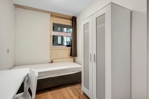 Privékamer in appartement Slaapkamer: 6 m² Woning: 85 m² Gemeubileerd Plaats voor 1 persoon 3 huisgenoten (vrouwen) Volledig gemeubileerd appartement midden in het centrum van Rotterdam, op de 3e verdieping met lift. Op loopafstand vindt u de Markthal, de bibliotheek, restaurants, winkels en het openbaar vervoer. Vanaf station Blaak kunt u diverse trams, treinen en de metro nemen.
