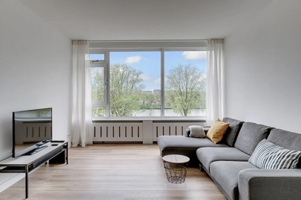 Begane grond: Entree met intercom, hal, brievenbussen, trapopgang en toegang tot de berging. Derde verdieping: Entree in de hal met meterkast, intercom en toilet met fontein. De woonkamer heeft grote ramen met mooi uitzicht op het kanaal. Aan de achterzijde kijk je uit op een perkje. Er zijn twee slaapkamers met beiden uitzicht op het kanaal. De grote slaapkamer is voorzien van een tweepersoonsbed en garderobekast. De tweede slaapkamer kan naar eigen inzicht worden ingedeeld. De keuken is voorzien van diverse inbouwapparatuur. De badkamer is voorzien van een inloopdouche, design radiator en een wastafel. Het gehele appartement is voorzien van een laminaatvloer en dubbele beglazing. In de onderbouw is ook nog een eigen berging. – Geschikt voor werkend stel/ alleenstaande; – Niet geschikt voor woningdelers;