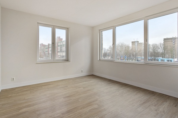Het appartement heeft twee slaapkamers, welke beide een oppervlakte hebben van circa 12 vierkante meter. De moderne badkamer is voorzien van een douche, wastafel met wastafelmeubel en heeft een toilet. Daarnaast heeft de inpandige berging een wasmachine- en drogeraansluiting. Het appartement heeft een licht woonkamer door de grote raampartijen, welke beschikt over een moderne keuken welke uitgerust is met alle benodigde inbouwapparatuur. Vanuit de woonkamer is de loggia te bereiken.
