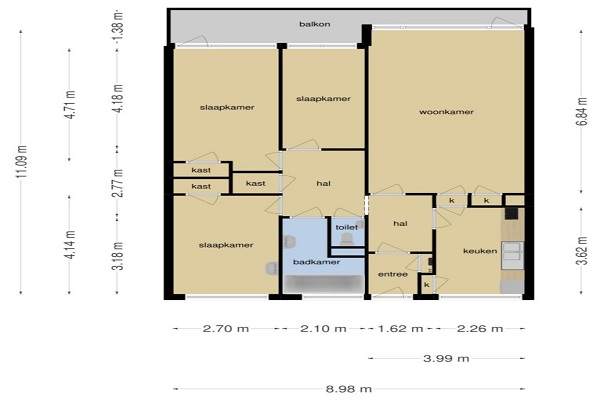 Indeling Via een gemoderniseerde entree zijn de appartementen zowel per trap als per lift bereikbaar. Malvert is gelegen op de 2e etage. Het appartement heeft de volgende indeling: Entree, hal, bergkast op de overloop, badkamer met inloopdouche, apart toilet, 3 slaapkamers waarvan 2 met een vaste kast, ruime woonkamer met open keuken. De keuken is voorzien van inbouwapparatuur. Ruim balkon en een berging in het souterrain.