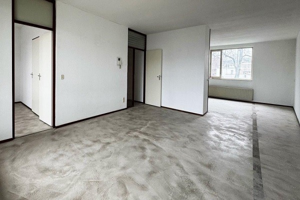 Het appartement is voorzien van een woonkamer met een halfopen keuken (nieuw geplaatst!), badkamer, separaat toilet, twee slaapkamers en balkon. Via de hal heeft u toegang tot de woonkamer, één van de slaapkamers, de badkamer en het toilet. Via de woonkamer is de grote slaapkamer te bereiken die ook toegang geeft tot de badkamer. Tevens is via de woonkamer het balkon te bereiken.
