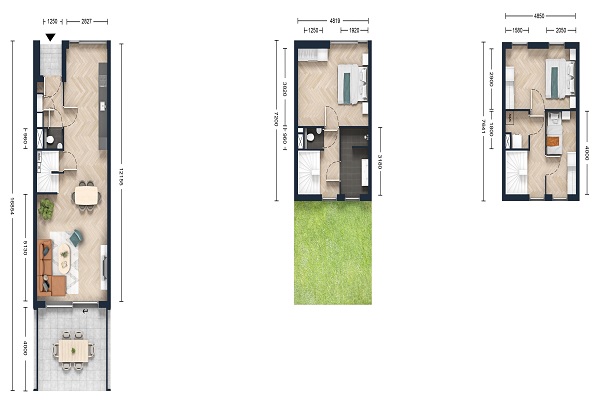 Deze prachtige eengezinswoning heeft een oppervlakte van 119,8 m2. De entree van deze woningen is gesitueerd aan de Flying Dutchmanstraat. Op de begane grond vind je het toilet, een trapkast, de woonkamer en een witte open keuken met een zwart composiet aanrechtblad. De keuken is voorzien van een koelkast met vriesvak, een combi-oven, een afwasmachine en een inductiekookplaat met afzuigkap. Via de schuifpui bereik je het terras welke uitkijkt op de binnentuin van het complex. Op de 1e verdieping vind je de master bedroom, een badkamer met een inloopdouche en een dubbele wasbak. Er is een separate toiletruimte. Op de 2e verdieping zijn nog 2 slaapkamers te vinden en een berging met de wtw-installatie en aansluitingen voor de was- en droogcombinatie.