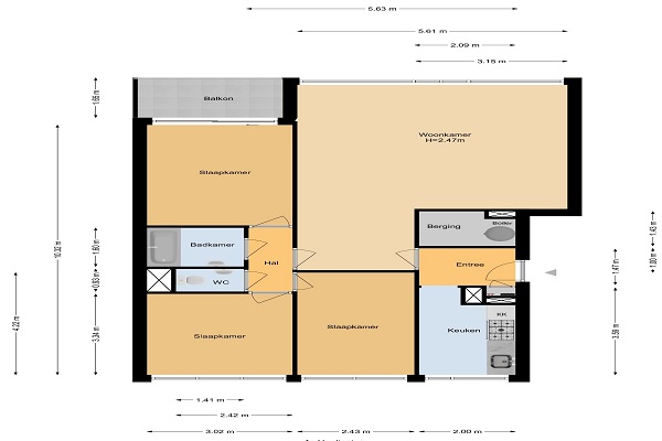 Indeling: De woning is voorzien van een royale woonkamer met laminaatvloer, een moderne keuken met inbouwapparatuur, drie slaapkamers en een badkamer met douchecabine, wastafel met meubel en een wasmachineaansluiting. Separaat toilet. Het appartement is volledig voorzien van isolerende beglazing. Op de begane grond is een berging aanwezig maar ook in het appartement is een aparte berging aanwezig.