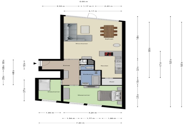 De ruime woonkamer wordt prachtig verlicht door het vele daglicht en biedt direct toegang tot de zonnige tuin – perfect voor een in de ochtend of een borrel met vrienden in de avond. De nieuwe keuken is een echte eyecatcher en voorzien van alles wat je nodig hebt: een schiereiland met inductiekookplaat en ingebouwde afzuiging, een koel-vriescombinatie, combi-oven en vaatwasser. Het appartement beschikt over twee slaapkamers, een ruime hoofdslaapkamer van ca. 15 m² en een tweede kamer van ca. 7 m², ideaal als kinderkamer, werkkamer of logeerkamer. De moderne badkamer is centraal gelegen en uitgerust met een ligbad, aparte douche, wastafel en handdoekradiator. Het toilet is separaat. Daarnaast is er een inpandige aansluiting voor de wasmachine en een externe berging voor extra opbergruimte.