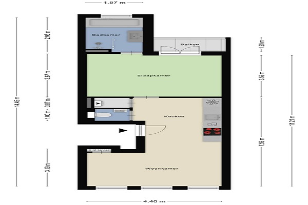 Het appartement is in 2023/2024 volledig gerenoveerd en heeft een oppervlakte van 50 vierkante meter. Aan de voorzijde is de lichte woonkamer met open keuken. De moderne keuken is voorzien van een koel,- vriescombinatie, vaatwasser, inductiekookplaat, afzuigkap en combioven. Aan de achterzijde is de ruime slaapkamer. Vanuit de slaapkamer zijn het balkon (N) en de badkamer te bereiken. De badkamer heeft een inloopdouche, een ligbad en een dubbele wastafel met meubel, het toilet is separaat en tevens is een apart washok aanwezig. Op de 4e verdieping van het pand is nog een extra kamer gerealiseerd (8m2), die uitstekend gebruikt kan worden als werkkamer of als berging.