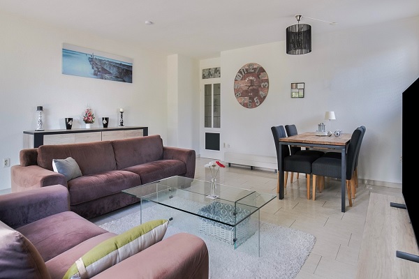 Indeling De gemeenschappelijke entree is voorzien van een bellentableau, brievenbussen en biedt toegang tot de trappenhal. De hal van het appartement biedt toegang tot de woonkamer, keuken, de grote slaapkamer, badkamer, apart toilet en installatieruimte. In de installatieruimte bevindt zich ook de aansluiting voor de wasmachine. De woonkamer biedt ruimte voor een zitgedeelte bestaande uit 2 banken en een eethoek bestaande uit een tafel met 4 eetkamerstoelen. De achterzijde van de woonkamer heeft uitzicht op en biedt toegang tot de tuin. De keuken in hoekopstelling is voorzien van diverse inbouwapparaten, Denk hierbij aan een 4-pits gaskookplaat, een inbouwoven, inbouwkoelkast en vaatwasser. De muren zijn tot zeker 1.20 hoogte betegeld met een licht beige tegel. De eerste slaapkamer ligt aan de achterzijde van de woning en heeft uitzicht en toegang tot de tuin. Deze is voorzien van een laminaatvloer, raamdecoratie, een tweepersoonsbed en garderobekast. De badkamer beschikt over een douchecabine, ligbad en een wastafel met meubel. Ook zijn er diverse accessoires aanwezig zoals een planchet, spiegel, handdoekhouders en verlichting. Het apart toilet is voorzien van een hangend closet, fonteintje, volledig betegelde wanden en diverse accessoires. De tweede slaapkamer gelegen aan de voorzijde van de woning is voorzien van een laminaat vloer en een gordijnrails. De slaapkamer is gemeubileerd met een tweepersoonsbed en diverse opbergmogelijkheden. De woning heeft maar liefst 2 bergingen met een een totale oppervlakte van ruim 25m2. Deze zijn voorzien van licht en elektra. Aan de voorzijde van het appartementencomplex bevind zich de parkeerplaats in de vorm van een carport. De tuin is te bereiken vanuit de woonkamer en een van de 2 slaapkamers. -Max 2 personen