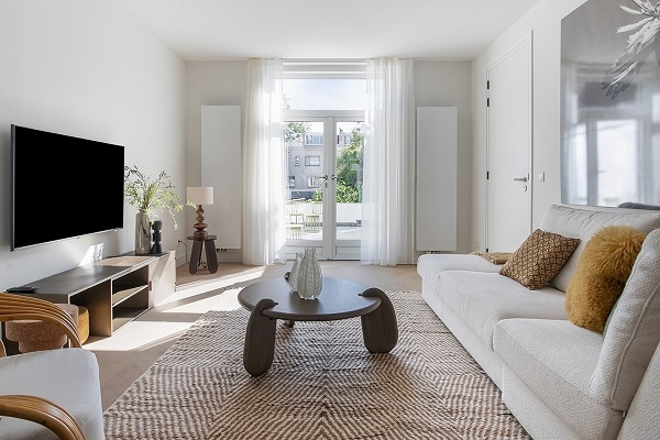 Indeling Centrale entree met doorloop naar de verdiepingen. Direct toegang via het portaal naar de entree van de woning en woonkamer, de woonkamer is grenzend aan het zonnige dakterras en de open keuken. Kast met opstelling wasmachine en separate betegeld toilet. Luxe keuken met eiland en voorzien van diverse inbouwapparatuur. Via trap is er toegang naar de slaapkamer met open badkamer.