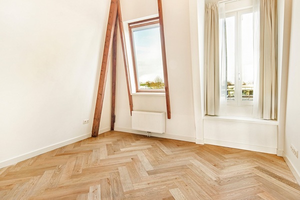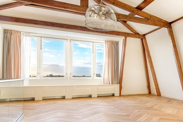 Binnenkomst via gemeenschappelijk trappenhuis of lift (uniek: lift tot in uw appartement!) op de vierde etage. Zeer ruime en lichte woonkamer met open keuken aan de achterzijde gelegen. De gehele glazen pui aan de achterzijde kan worden geopend en biedt schitterend uitzicht. Keuken voorzien van alle benodigde inbouwapparatuur. 2 slaapkamers van goed formaat aan de voorzijde gelegen. Badkamer voorzien van bad, douche en wastafel. Separaat toilet. Separate ruimte voor wasmachine/droger. Door de gehele woning ligt een mooie visgraat parketvloer. Werkelijk alles is tot in de details hoogwaardig afgewerkt.