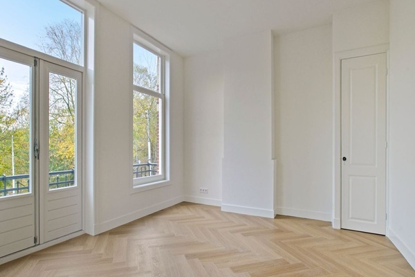 Volledig gerenoveerd appartement gelegen op de tweede verdieping, de woning wordt met een laminaatvloer en nieuw schilderwerk opgeleverd. De woning is beschikbaar voor 2 woning delers. Via de entree op de tweede verdieping betreed je de woning via de centrale hal die toegang biedt tot alle vertrekken. Aan de voorzijde bevindt zich de ruime en lichte woonkamer, met een karakteristieke erker en grote raampartijen. De kamer heeft een open indeling en biedt via dubbele deuren toegang tot het balkon aan de straatzijde. Aangrenzend ligt de keuken, welke is opgesteld in een praktische, langgerekte indeling en beschikt over de benodigde aansluitingen en werkruimte. Aan de rustige achterzijde van het appartement bevinden zich twee ruime slaapkamers. De grootste slaapkamer ligt rechts en biedt voldoende plek voor een groot bed en kastruimte. De tweede slaapkamer ligt links en beschikt over openslaande deuren naar het balkon, met uitzicht op de binnentuinen. De badkamer is centraal gelegen en voorzien van een douche en wastafel. Daarnaast is er een separaat toilet en een CV-ruimte in de hal. Een extra kast biedt plek voor de meterkast en opbergruimte. Kortom: een licht, ruim ingedeeld appartement met twee goede slaapkamers en twee balkons, gelegen op een aantrekkelijke locatie. geschikt voor delers