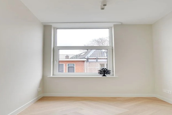 Indeling: de woning met beschermd stadsgezicht heeft 3-kamers waarvan 2 ruime slaapkamers. Begane grond: via de gezamenlijke entree kom je in een ruim en verzorgd trappenhuis. Bij binnenkomst kom je in een ruime hal met een stijlvolle houten visgraatvloer en een praktische vaste kast. Vanuit de hal heb je toegang tot het separate toilet en de moderne open keuken. De keuken is een echte eyecatcher en beschikt over een kookeiland en diverse inbouwapparatuur, waaronder een koelkast, combimagnetron, inductiekookplaat met afzuiging en een vaatwasser. De zeer lichte en royale woonkamer is voorzien van airconditioning en een fraaie houten visgraatvloer, wat zorgt voor een luxe en comfortabele uitstraling. Via de hal bereik je twee ruime slaapkamers en de badkamer. De badkamer is modern uitgevoerd en voorzien van een inloopdouche, wastafel en een aansluiting voor de wasmachine.