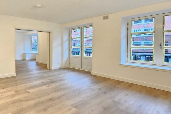 NIET GESCHIKT VOOR DELEN/BORGSTELLERS/STUDENTEN Indeling: Eigen entree op de 1e verdieping. Aan de voorzijde is de woonkamer (ca.10,33M2) met en-suite eetkamer/ keuken (ca. 17,55m2) en toegang tot het balkon op het zuiden. De twee slaapkamers liggen aan de tuinzijde, een slaapkamer is ca. 16,40M2 en de andere slaapkamer is iets kleiner, ca 10,40M2. Het balkon is toegankelijk vanuit beide slaapkamers. De badkamer heeft een inloopdouche. Het toilet is apart. Het appartement is voorzien van dubbele beglazing en PVC vloeren.
