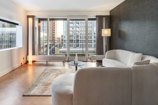 Indeling Centrale entree met liften, trappenhuis en bellentableau Toegang tot de bergingen en de parkeergarage -Entree/hal -Ruime hoofdslaapkamer met veel natuurlijk lichtinval -Tweede slaapkamer: Geschikt als logeerkamer of kantoor -Zeer ruime en lichte woon-/eetkamer met groot zijraam, prachtig uitzicht en schuifpui naar het zonnige terras -Moderne halfopen keuken voorzien van inbouwapparatuur -Hal met toegang tot het toilet en een was-/bergruimte -Luxe badkamer voorzien van ligbad, inloopdouche en dubbele wastafel