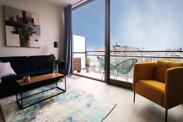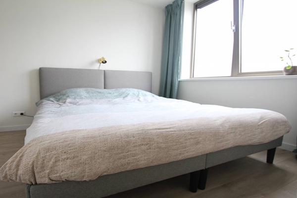 Indeling: Met de lift naar de bovenste verdieping, entree, hal, comfortabele slaapkamer met tweepersoonsbed en grote kledingkast, luxe nieuwe badkamer met regendouche, design handdoekradiator, wastafel met spiegel en toilet. Tegenover de badkamer bevindt zich een bergruimte met wasmachine. Aan de voorzijde van het appartement bevindt zich de ruime en lichte woonkamer met directe toegang tot het zonnige balkon. Het balkon is gelegen op het zuidwesten en ligt over de gehele breedte van de woning. Door de gunstige open ligging heeft u vrij uitzicht over de stad en geen bovenburen. De luxe open keuken is voorzien van diverse inbouwapparatuur waaronder een inductiekookplaat, afzuigkap, vaatwasser, oven/magnetron en een koel-/vriescombinatie. Niet beschikbaar voor studenten