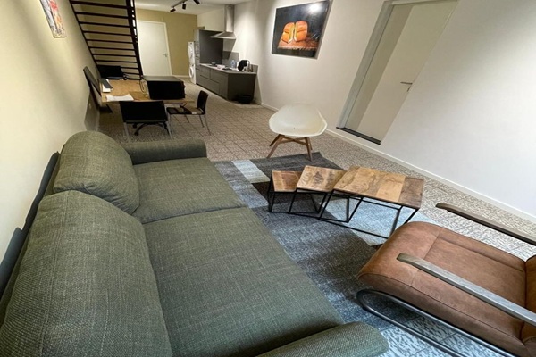 Indeling Middels de ruime entree toegang naar de achterzijde van de waar de royale woonkeuken zich bevindt. De woonkeuken is ruim opgezet (ca. 40m²) en is voorzien van een moderne keuken met inductiekookplaat, afzuigkap, oven, magnetron, spoelbak, wasmachine, wasdroger, en diverse opbergkasten. Deze ruimte is verder voorzien van een ruime eettafel met stoelen, zitbank en een wasmachine en droger. De patio biedt toegang naar de semi-studio’s en de trap naar het riante gemeenschappelijke dakterras van ruim 50m².