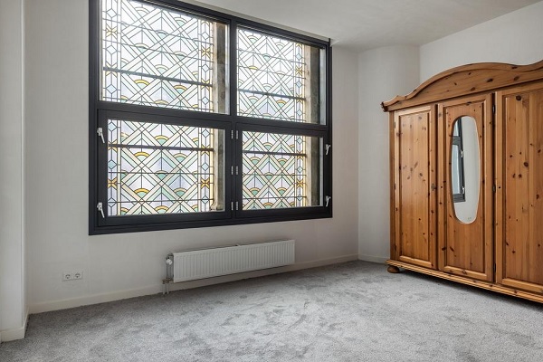 Indeling: Via het bellentableau bereikt u het indrukwekkende schip van de kerk. De monumentale centrale hal met haar hoogte, pilaren en lichtinval is een beleving op zich. Vanuit hier heb je toegang tot het appartement, de centrale fietsenberging en de doorgang naar de steeg. Overloop met toegang tot beide slaapkamers, badkamer, toilet, stookruimte met berging. De hoofdslaapkamer aan de voorzijde is voorzien van een prachtig glas-in-loodraam. De tweede slaapkamer aan de achterzijde beschikt eveneens over een karakteristiek glas-in-loodraam dat geopend kan worden. Beide slaapkamers zijn afgewerkt met vloerbedekking. De moderne badkamer is uitgevoerd met een ruime inloopdouche, wastafel en handdoekenradiator. Hier springen direct de uitzonderlijk hoge plafonds in het oog, die zorgen voor een indrukwekkend gevoel van ruimte. Aan de voorzijde bevindt zich de woonkeuken, compleet uitgerust met een inductiekookplaat met geïntegreerde afzuiging, koel-vriescombinatie, combi-oven en een vaatwasser. Aan de achterzijde ligt de ruime, speels ingedeelde woonkamer, een fijne plek om te ontspannen of gasten te ontvangen.