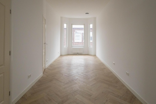 Via een eigen privé-entree bereik je met de trap de eerste etage. Bij binnenkomst valt direct de mooie afwerking op, met als echte blikvanger de stijlvolle visgraatvloer die de woning een luxe en warme uitstraling geeft. De overloop biedt toegang tot een nette toiletruimte met hangend toilet en wastafel. Aan de voorzijde bevindt zich de eerste slaapkamer. De ruime woonkamer is heerlijk licht en vormt een fijne plek om te ontspannen. De open keuken sluit hier perfect op aan en is compleet uitgerust met onder andere een koel-vriescombinatie, oven, magnetron, gaskookplaat en afzuigkap — ideaal voor kookliefhebbers. Via de keuken bereik je de eerste badkamer, voorzien van een wastafelmeubel, handdoekradiator en een ruime inloopdouche. De tweede slaapkamer ligt aan de rustige achterzijde van de woning. De trap brengt je naar de tweede woonlaag. Hier geeft de overloop toegang tot een tweede, moderne badkamer met hangend toilet, wastafelmeubel, handdoekradiator en inloopdouche. Aan de voorzijde bevindt zich een ruime derde slaapkamer. De vierde slaapkamer biedt direct toegang tot het zonnige dakterras, waar je volop ruimte hebt voor een fijne lounge- of tuinset en kunt genieten van een vrij uitzicht over de wijk. De vijfde slaapkamer ligt aan de achterzijde en is eveneens royaal van formaat.