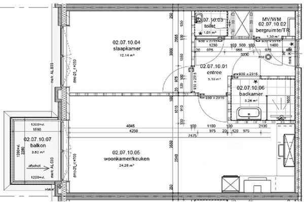 De lichte woonkamer met open keuken vormt het centrale leefgedeelte van het appartement. Dankzij de grote raampartijen is er veel natuurlijk licht en een prettig ruimtelijk gevoel. De open keuken biedt volop mogelijkheden om naar eigen wens in te richten en vormt een fijne plek om te koken en samen te komen. Vanuit de woonkamer is het balkon bereikbaar, waar je heerlijk buiten kunt zitten en kunt genieten van de levendigheid van de stad. De slaapkamer is ruim genoeg voor een tweepersoonsbed en kastruimte en biedt een rustige plek om je terug te trekken. De badkamer is praktisch ingedeeld en voorzien van een douche en wastafel. Daarnaast beschikt het appartement over een separaat toilet en een interne berging met ruimte voor de wasmachine en technische installaties, wat zorgt voor extra gemak in het dagelijks gebruik.