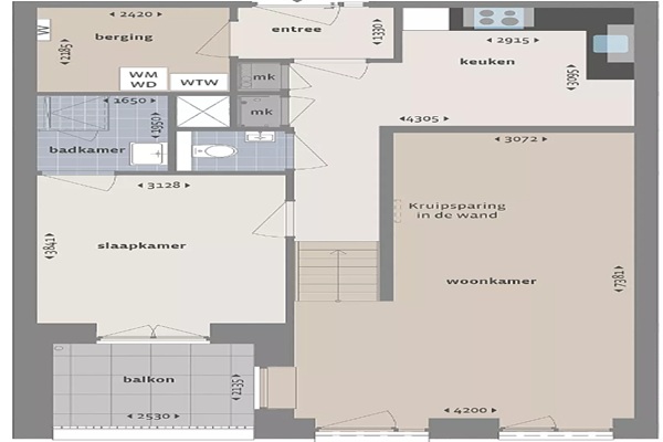 Dit 2-kamer appartement met een oppervlakte van 71 m2. Het appartement beschikt over een ruime woonkamer. Vanuit de hal bereik je de woonkamer en via de woonkamer via de gang bij de slaapkamer. De badkamer is voorzien van een douche, designradiator en dubbele wastafel. Het toilet tref je in een separate ruimte. De open keuken is uitgerust met diverse inbouwapparatuur. Praktisch is de inpandige berging welke is voorzien van een aansluiting voor jouw wasmachine en/of droger!