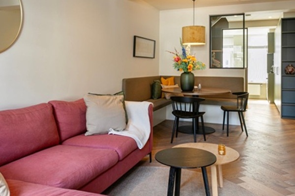De indeling van deze woning: begane grond is er een gezamenlijke entree met de mooie en sfeervolle kapperszaak. Dan is er de eigen toegangsdeur tot het appartement met de trap naar boven. 1ste verdieping, geheel voorzien van vis-graad eiken houten vloer; overloop met aan de voorzijde de luxe en geheel op maat gemaakte keuken in de sfeervolle kleur olijfgroen. Door de 'goud' accenten van gootsteen, kraan en kastgrepen maakt 't helemaal compleet. De keuken is voorzien van inbouwapparatuur zoals 5-pits gaskooktoestel met wok brander, afzuigkap, vaatwasser, combi-oven, koelkast, separate vriezer met lades en diverse kasten en lades. Aan de achterzijde is de woonkamer gelegen met een gezellige eethoek met vaste hoek-bank en ronde tafel met bijpassende stoeltjes, een gezellige zitkamer met loungebank en tv en van hieruit is er een terrasdeur naar tuin met terrassen. Het 1ste terras bij de woonkamer is 2,3m.x5,75m. van daaruit een 10m. lange doorloop naar het achterste tuindeel met weer een terras en fraaie beplanting. In totaal is dit 16 meter diep. De 2de etage (volledige eikenhouten vloer) , overloop met aan de voorzijde de luxe badkamer (3m.x 2,35m.) in marmeren uitvoer met vloerverwarming en voorzien van royaal ligbad, royale inloopdouche met Rainshower, handdoeken radiator, extra grote wastafel met meubel en mooie grote ronde spiegel. Door de luxaflex raamdecoratie kunnen de grote raampartijen discreet dicht gemaakt worden. Aan de achterzijde is de slaapkamer gelegen (6m.x3m.) voorzien, fraai ingericht met bed en nachtkastjes met lampen en een airco. Ensuite en inclusief aan de slaapkamer is de ruime inloopkast op maat gemaakt met veel hang- en legdelen, lades en kasten. De 3de etage (geheel eiken houten vloer), overloop met in een kast weggewerkt de CV installatie en aan de achterzijde slaapkamer 2 (4.80m.2,72m.) voorzien van een comfortabele slaapbank, inbouwkasten, dakkapel en eveneens een airco. Aan de voorzijde is een functionele wasruimte gemaakt waar de wasmachine en droger zijn geplaatst met daarbovenop een fijn werkblad en waar tevens een wastafel is gemaakt met warm- en koud water. Strijkplank en strijkijzer is allemaal aanwezig. Evenals bed- en bad linnen; aan alles is gedacht. De woning wordt uitsluitend verhuurd aan één huishouden. Kamergewijze verhuur en woningdeling zijn niet toegestaan conform de gemeentelijke regelgeving.